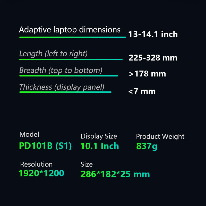 The Dual Portable 10.1" Tri-Fold Monitor is a compact and innovative portable solution designed to enhance productivity and multitasking for professionals, students, gamers, and creatives. Featuring a 10.1-inch Full HD display , tri-fold design , and one-cable triple display extender , this monitor is perfect for expanding your laptop's workspace. Compatible with Windows 10+, macOS (including M1/M2 chips), Chrome OS, and other systems, the Dual Portable Tri-Fold Monitor offers seamless integration, portability, and high-quality visuals in an ultra-slim and lightweight design.