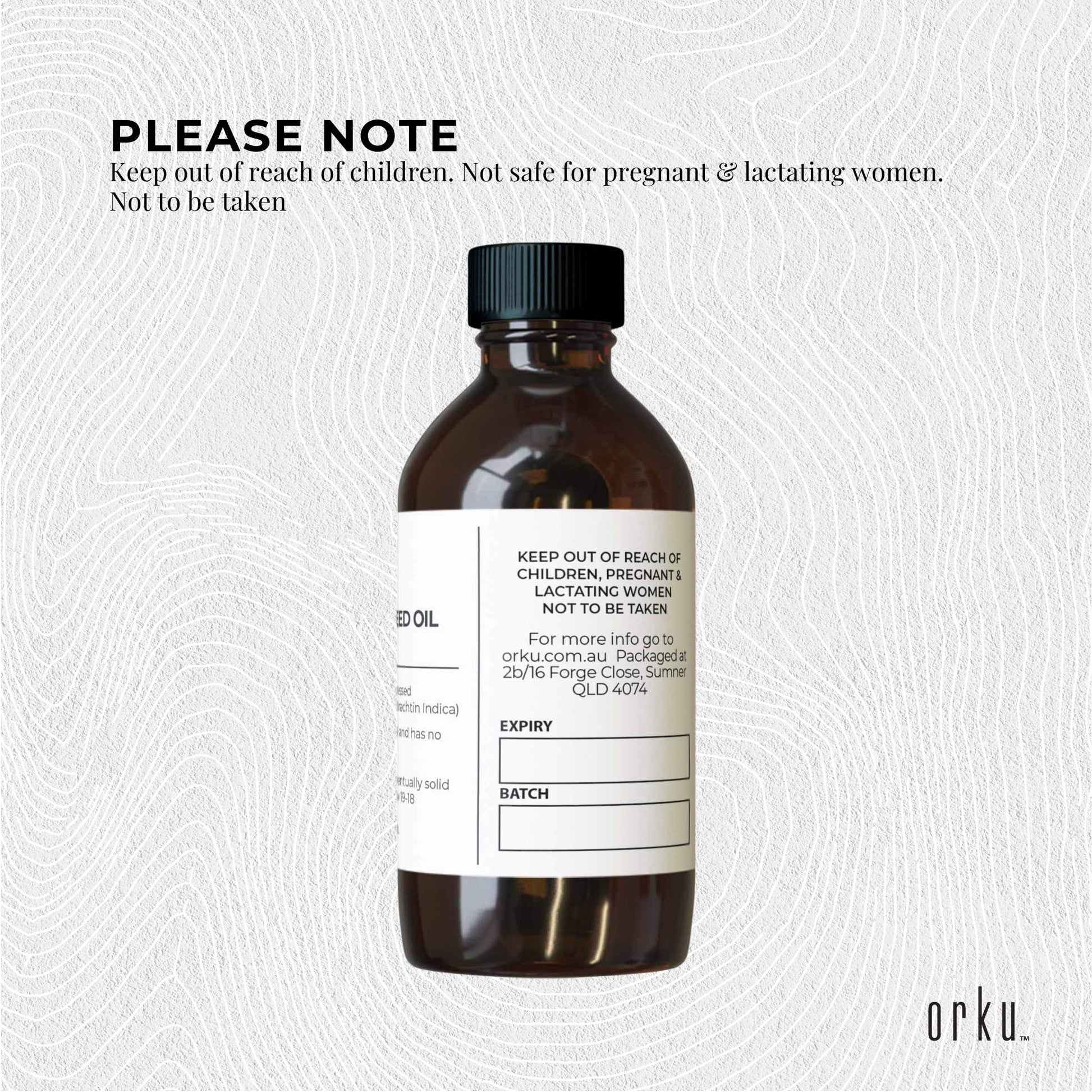 Organic Neem Seed Oil in Amber glass (round) bottle with euro dropper dispenser.