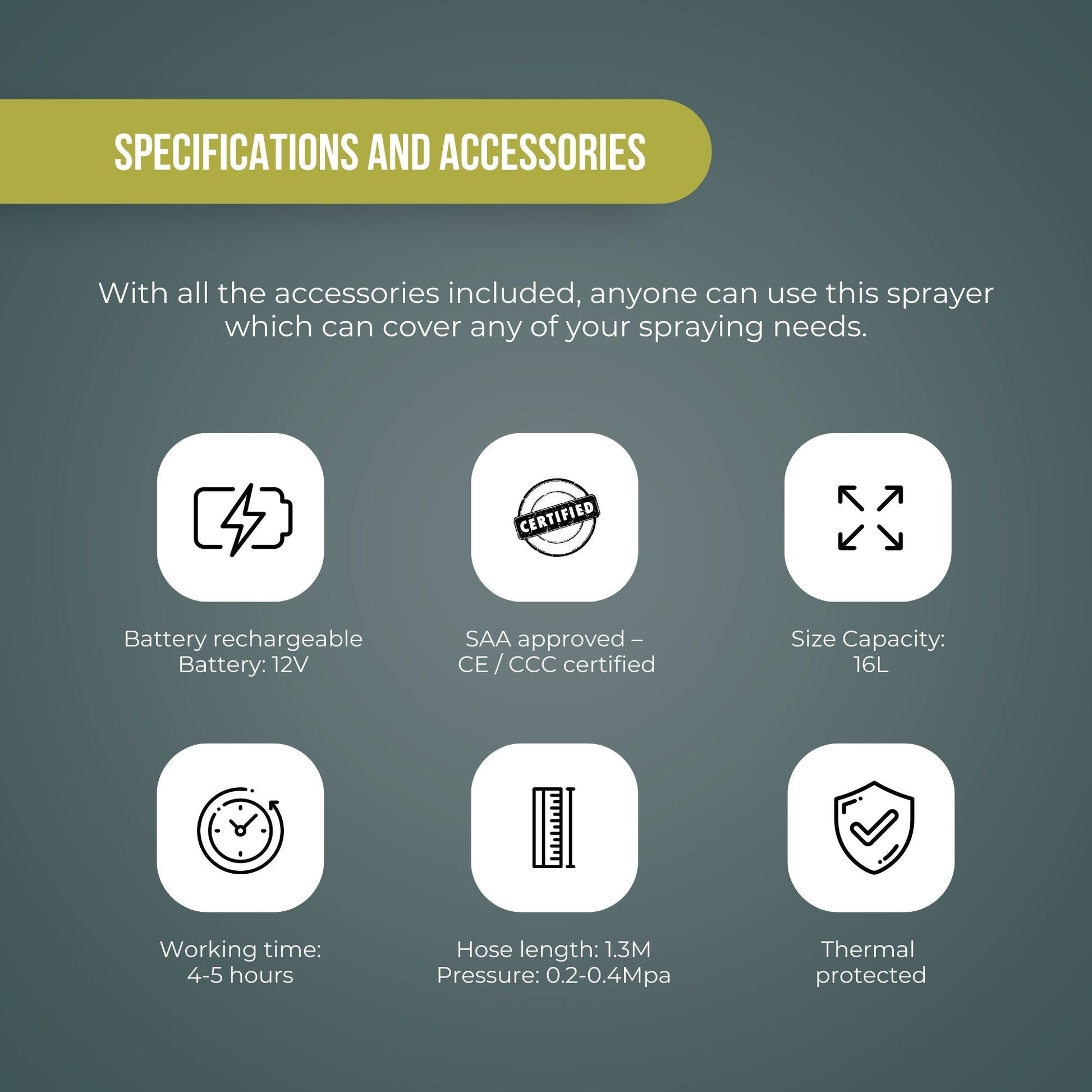With all the accessories included, anyone can use this sprayer which can cover any of your spraying needs.