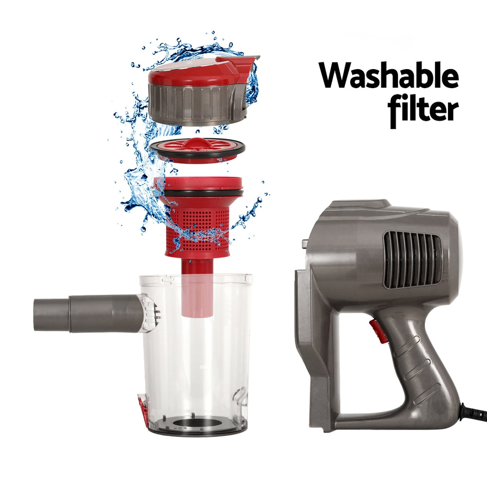 For the ultimate in easy vacuuming, our Devanti Handstick Vacuum Cleaner always makes for efficient cleaning. The powerful 500W 33,000rpm motorised head has steady suction power for a thorough clean. Its pivoting head tilts and swivels, and the included 2-in-1 brush and crevice nozzle can be fitted for any surface or space. Its cable design allows you to vacuum continuously. The generous 3.8m cable lets you reach every corner and you can convert to handheld mode within seconds. All collected dirt and debris pass through a washable and reusable HEPA filter that eliminates up to 99.97% of dust and allergens. Other features include an extendable handle and a one-click design to empty the dust container. Join the cleaning revolution and enjoy hassle-free vacuuming with a Devanti Handheld Vacuum Cleaner.