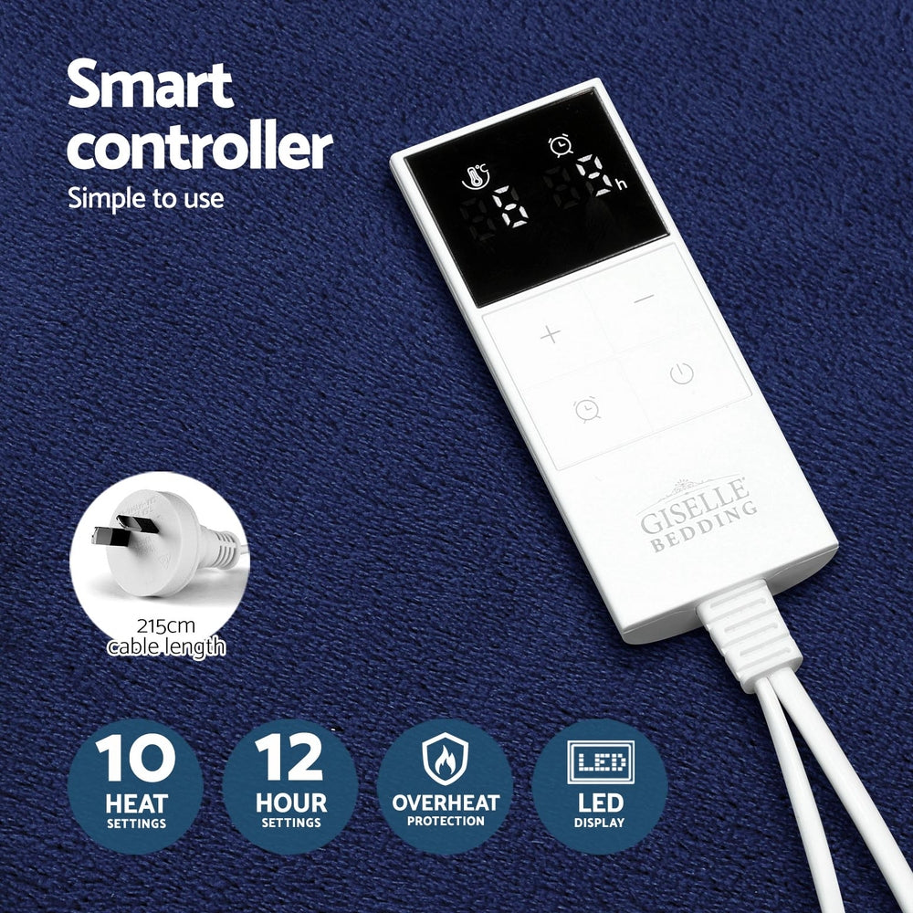 Get that warm and cosy feeling every day with a Giselle Bedding Electric Throw Rug. The double-sided throw rug is made from premium flannel and sherpa fabric, our electric throw rug is just the thing to help you cut down on costly heating bills while still enjoying the heat up-close. The throw rug has all the features of our electric blankets with up to 10 temperature settings, a 12-hour timer, overheat protection, automatic shut-off and a detachable controller with LED display so you can always be in control of the temperature. It is anti-dust mite and bacteria and is machine washable for a clean blanket time and time again. Keep your bedroom or living room cosy and comfortable with a warm and huggable Giselle Bedding Electric Throw Rug.