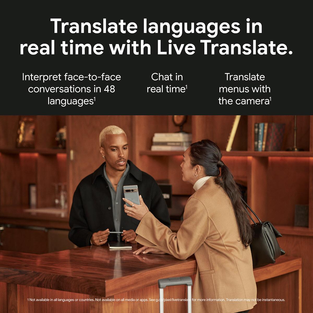 With Live Translate, you can interpret face-to-face conversations in 48 languages, translate menus with your camera and chat in real time.6