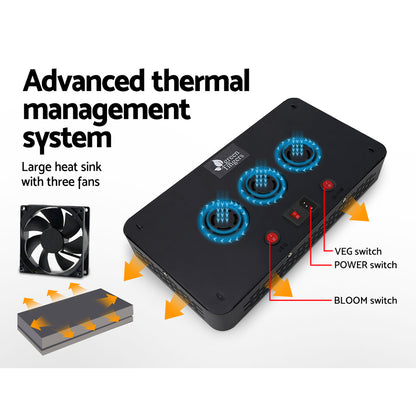 With LEDs, there is a cost savings of up to 70% for the most effective 'produce per watt'. Both ballast and reflector are built-in and an advanced thermal system keeps the ensemble cool at all times. Plus, the full spectrum control also provides plants and flowers everything they desire in natural sunlight. Not least, the Grow Light is engineered to keep the balance with high PAR and suitable coverage so that light is spread out and not concentrated at the centre to prevent sunburn.