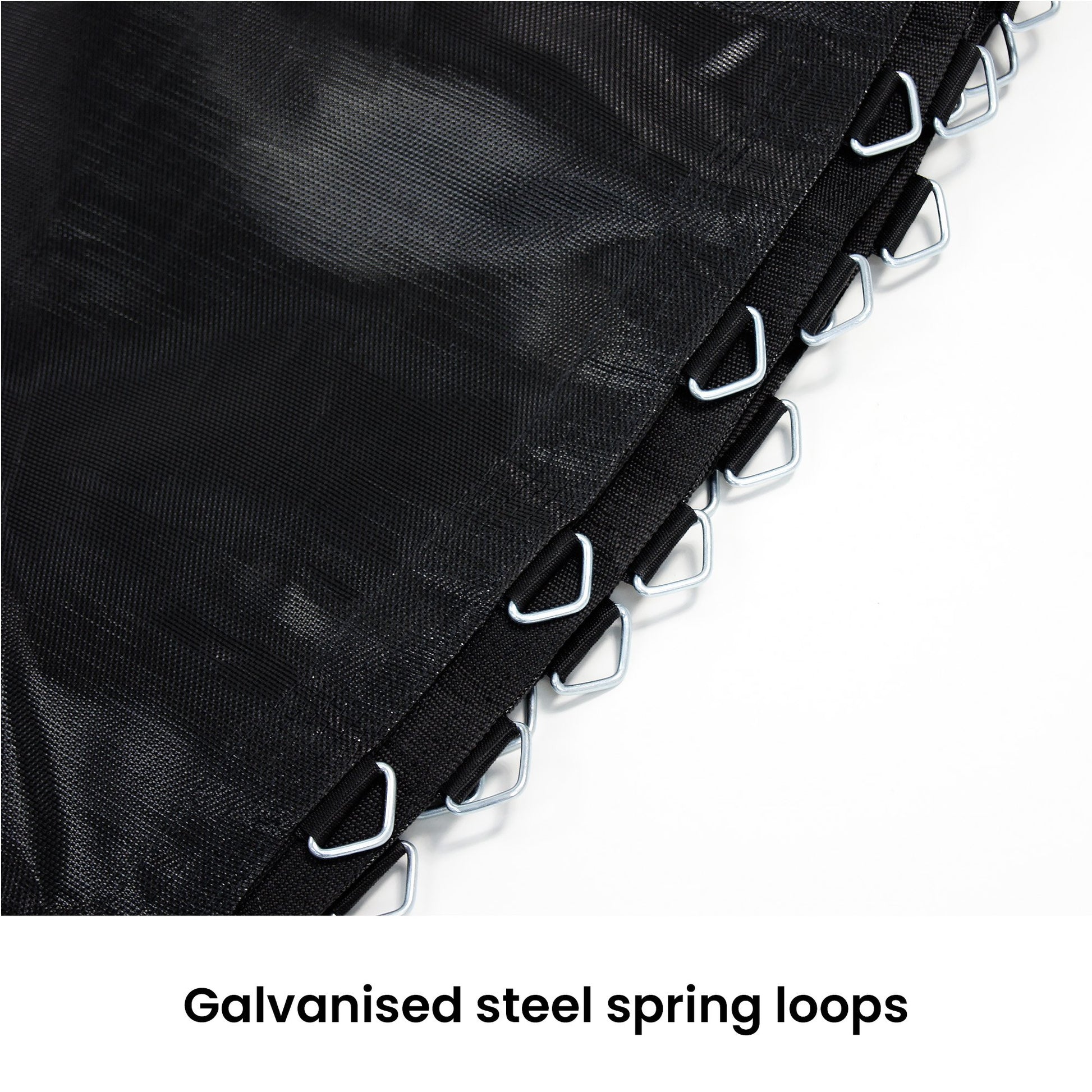 V240-TRP-MAT-EMJ-08Please measure the DIAMETER of your mat, the number of spring LOOPS and the LENGTH of your springs to ensure the mat is the correct size. Please choose your product carefully. Incorrectly purchased items will only be accepted for store credit if they are returned to us at the buyers' expense, in their original condition and packaging, exhibiting no sign of testing, nor use, and subject to a 30% re-stocking fee on the purchase price of the product.Size: 8ft (suits 135mm springs), spring loops: 48Size: 10ft (suits 135mm springs), spring loops: 64Size: 12ft (suits 165mm springs), spring loops: 72Size: 13ft (suits 165mm springs), spring loops: 84Size: 14ft (suits 165mm springs), spring loops: 96Size: 15ft (suits 165mm springs), spring loops: 108Size: 16ft (suits 185mm springs), spring loops: 108